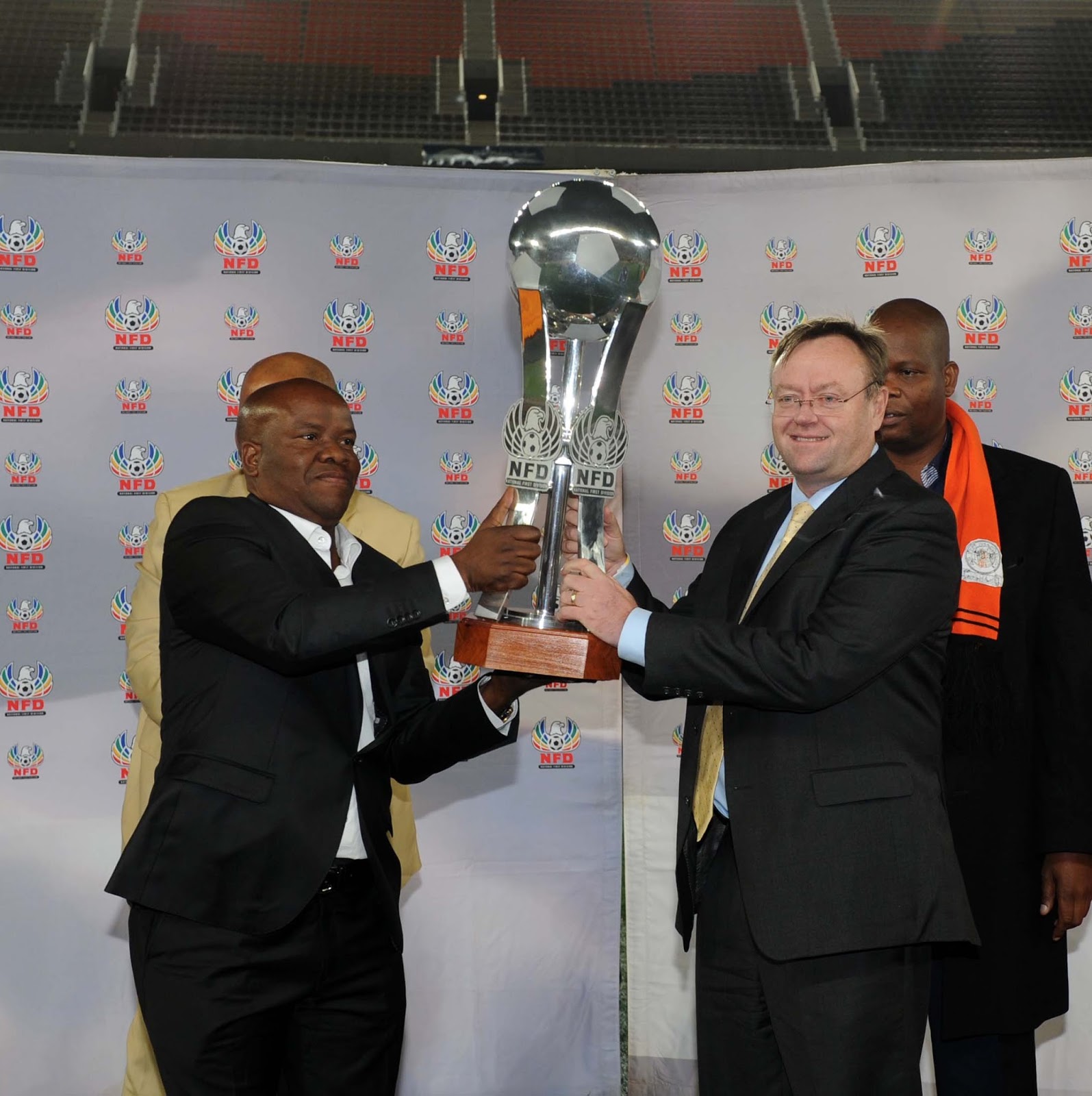 handed over the National First Division (NFD) trophy to Polokwane City.